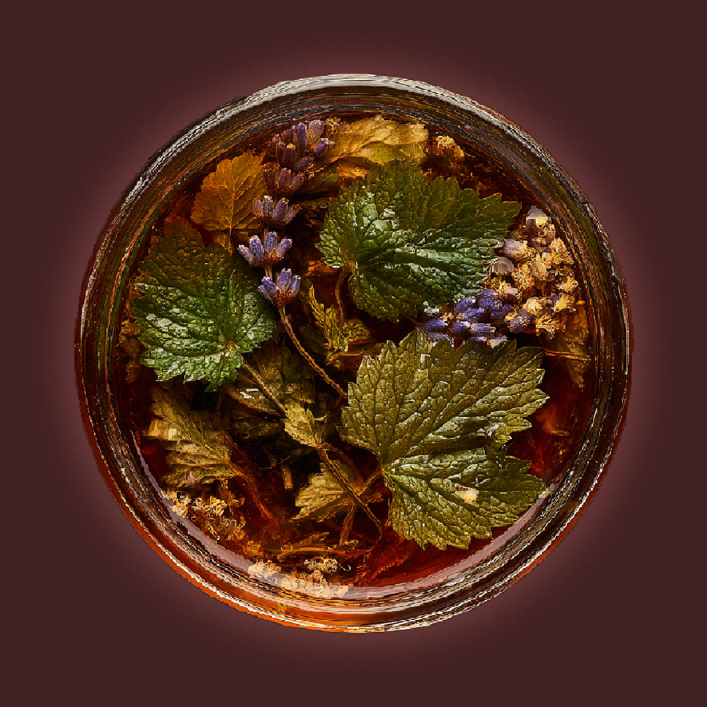 Each batch starts with a 1:3 extraction: one part herb to three parts solvent - a stronger ratio that lets the plant speak clearly. Purified water draws out softer compounds; glycerine or clean spirit reaches deeper, releasing oils and terpenes that carry the plant’s character.